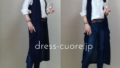 トップスに着ているローゲージニットの丈、私には短すぎ。